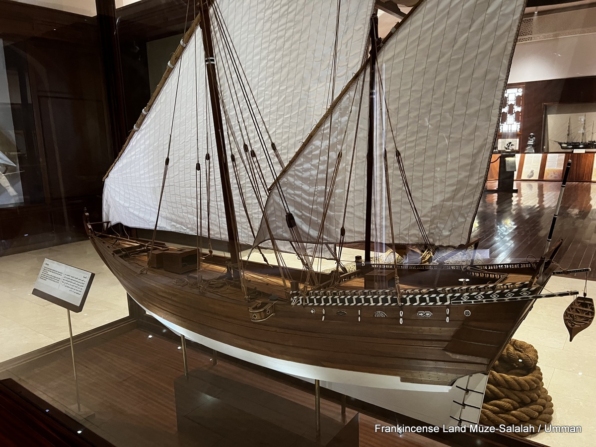 Daha sonra Frankincense Toprakları Müzesini gezdik. Müzenin bir bölümü denizcilikle ilgili. Zamanında kullanılan gemilerin maketleri ve limandan çıkartılan denizcilikle ilgili buluntular var. Umman halkının bir zamanlar denizcilikte olan ileri düzeyleri ve öncülük ettikleri aletlerle ilgili olarak sunumlar yapılıyor.