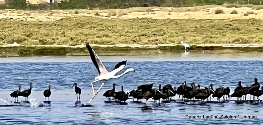 Lagün kuş gözleme yeri olarak biliniyor. Daha sulu mevsimde bu lagün flamingolarla doluyormuş. Biz oradayken suyu çok azalmış olsa da lagünde bir kaç flamingo vardı. Onları fotoğrafladık ve sonrasında sahilde biraz yürüdük. Bu satırları yazarken Ad Dahariz Plajı ile ilgili çok güzel fotoğraflar gördüm. Bizim gezide bu kısmı da eksik yapmışız. Hindistan cevizi ağaçlarına doğru daha çok yürümeliymişiz.
