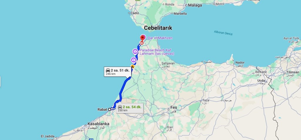 Rabat gezisi sonrasında 3 saat yol yaparak Tangier’e (Tanca) vardık. Tanca, Atlas Okyanusu ile Akdeniz‘in birbirlerine kavuşma noktasında, Cebelitarık Boğazı‘nın güney tarafında olan bir Fas kenti. Bizim programa göre Herkül Mağaraları ve Spartel Burnu (Cape Spartel) gezileri sonrası Tanca’da otel konaklamamız olacak. Ertesi gün de Chefchaouen‘e (Şafşavan) doğru yollara düşeceğiz.