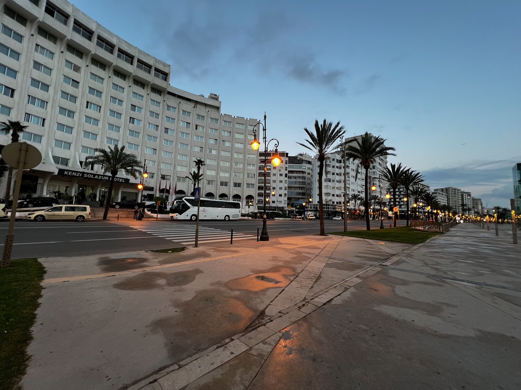 Konaklamamız Tanca’da oldu. Sabah erken kalkıp Tanca Kornişindeki otelin önünde kısa bir yürüyüş yaptık. Tanca, Kazablanka gibi yüksek ve modern binalarla dolu.