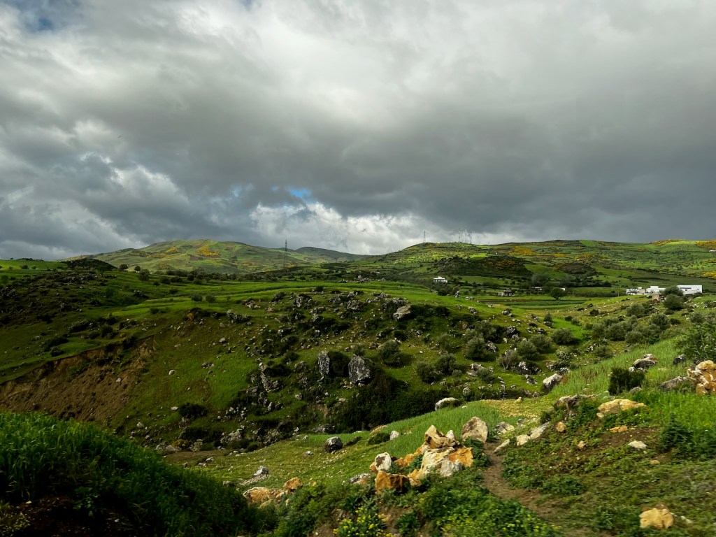 Bu arada Şafşavan’a gidiş yolunun güzelliğinden bahsetmesem olmayacak. Yol boyu Rif Dağları manzarasının güzelliği, dağların yeşil örtü ile kaplı olması hepimizi çok şaşırtıyor. Böyle bir yeşil ortamından, çöl ortamına geçecek olmak ilginç geliyor. Yağmur bugün de peşimizi bırakmadı. Ama o bile zaman zaman, bu güzel ortama gökkuşakları ile katkıda bulunuyor.