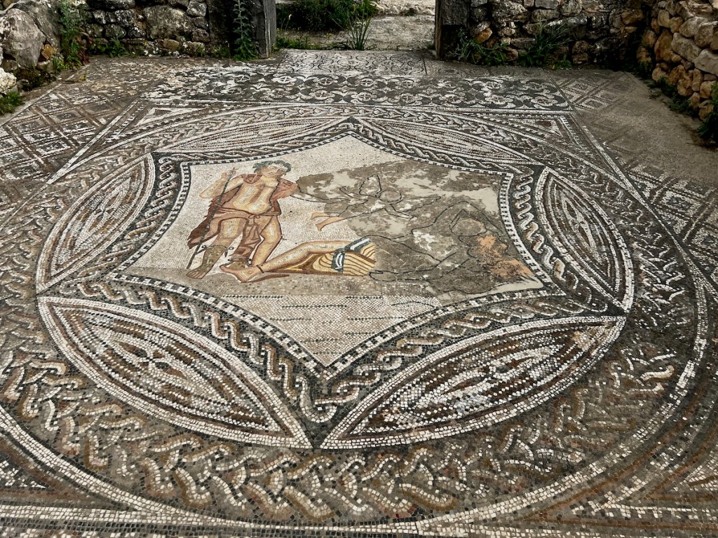 Atlet Evi Volubilis’te ziyaret ettiğimiz bir diğer zengin evi oldu. Mozaikte bir atlet, geriye doğru eşeğe binerken tasvir ediliyor.