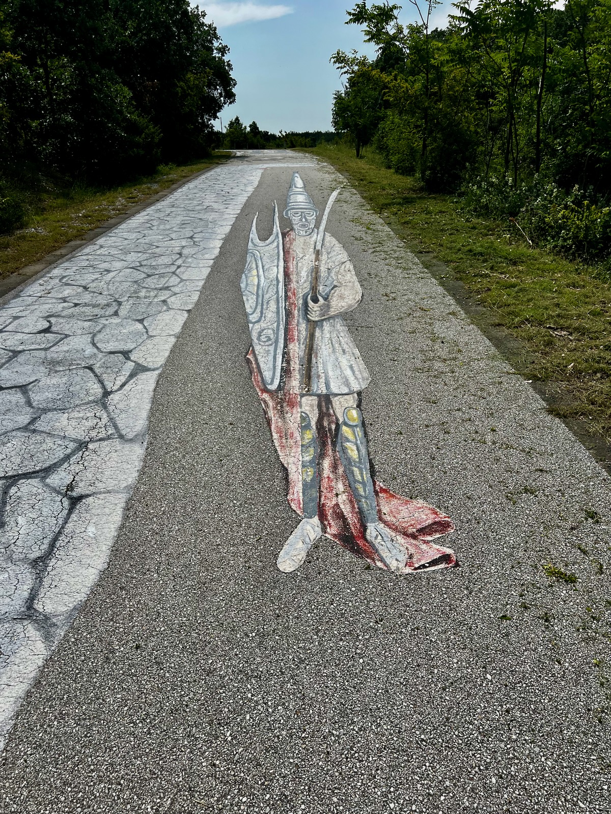 Mezek’de mezara giden asfalt yola, Trak uygarlığına ait savaşçıların resimleri çizilmiş. Bu mezarı ziyaret ederken aynı zamanda, sonra ziyaret edebileceğiniz Mezek Kalesi ziyareti için de giriş bileti almış oluyorsunuz.