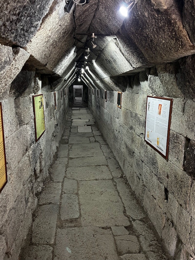 Mezara 20 metreden uzun bir koridordan (buna “dromos” deniyor) giriliyor. Ardından iki dikdörtgen antre ve bunların ardından arı kovanı kubbeli yuvarlak bir cenaze odası geliyor. Mezarın toplam uzunluğu yaklaşık 31 metre.
