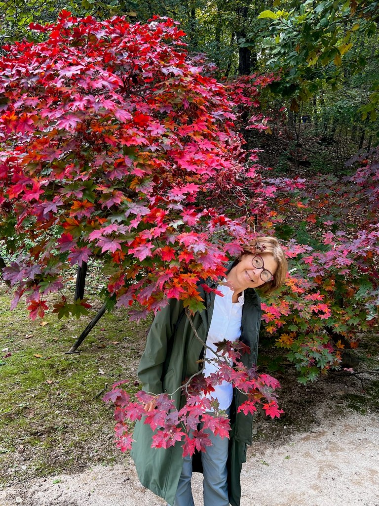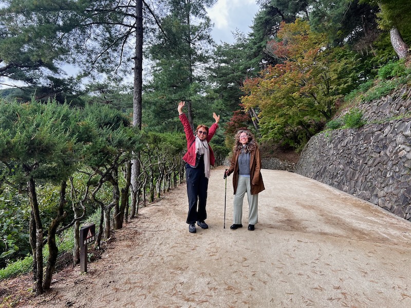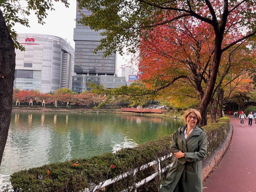 Eylül-ekim ayları Kore’de havanın serin, daha az yağışlı olduğu dönemdir. Ekim sonlarına doğru sonbahar, ağaçların cinsine göre, yaprakların rengini kızartır ya da sarartır. Biz Ekim ayı ortalarında geziye başladık. Yaprakları beklediğim kadar sarı ya da kırmızı bulamadım. Güney Kore yemyeşil bir ülke. Ağaçlar yapraklarını yeni yeni kızartıyor ve sarartıyordu. Kore’nin güneyini gezip, İstanbul’a dönüş için tekrar Seul’e geldiğimizde yapraklar daha sarı renkli, akçaağaçlar yapraklarını yeni yeni kızartmışlardı. Yukarıda Naime’nin akçaağaçların kızarmış yaprakları ile fotoğrafı, gezinin son gününde çekildi. Bizden sonraki 7-15 gün içinde yaprakların rengi iyice sonbahar renklerine bürünecekti. Gezi işleri her zaman önceden planlandığı gibi olmuyor. Bazen o kadar akçaağaç içinde, kızarmış yaprakları ağaç aramanız gerekecek, ve o tek bir ağacı bile buldu mu sevineceksiniz.