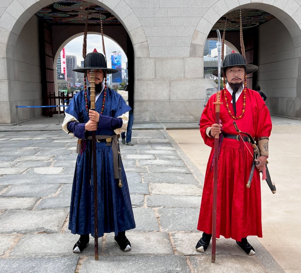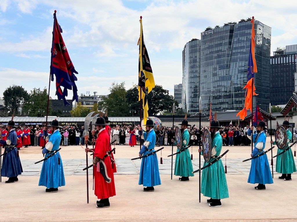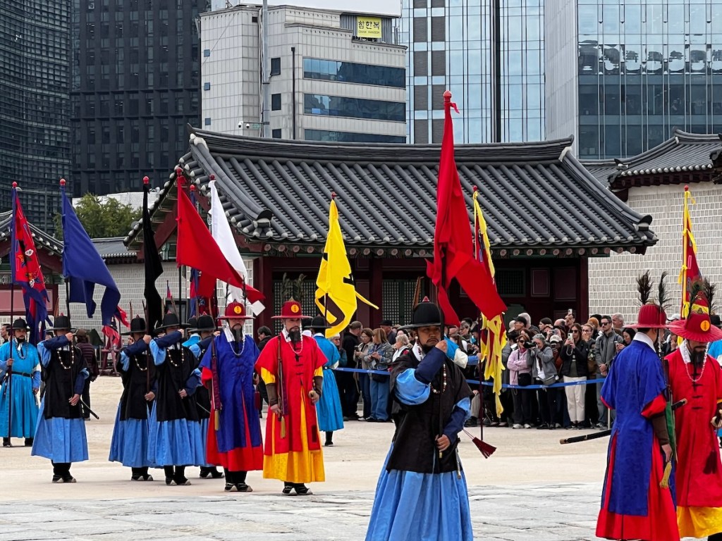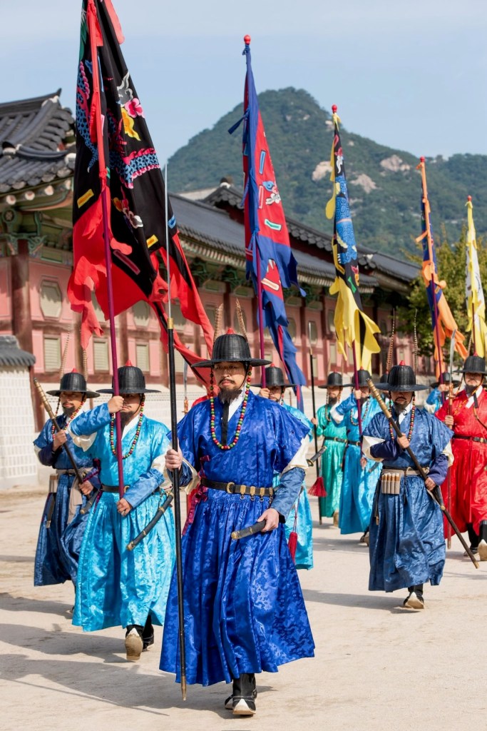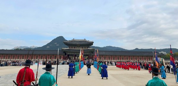 En büyük Joseon sarayı olan Gyeongbok Sarayı’nda nöbet değişim töreni, Gwanghwamun Kapısı önünde yapılıyor. Pazartesi hariç her gün sabah 10:00 ve öğleden sonra 14:00 saatlerinde bu tören gerçekleşiyor.