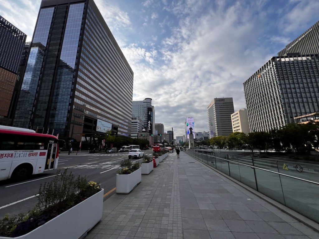 Bugünkü programımız Gyeongbok Sarayı’nın (Gyeongbokgung) Gwanghwamun Kapısı’ndan saraya girip, sarayın avlusundaki nöbet değişimini izlemek ile başlayacak. Seul’un trafiği gerçekten berbat. Otel ile hedef arasındaki 1,5 kilometrelik yol için bile, otobüsle neredeyse yarım saat seyahat etmek zorunda kaldık. Yürüsek 20 dakika tutuyormuş.