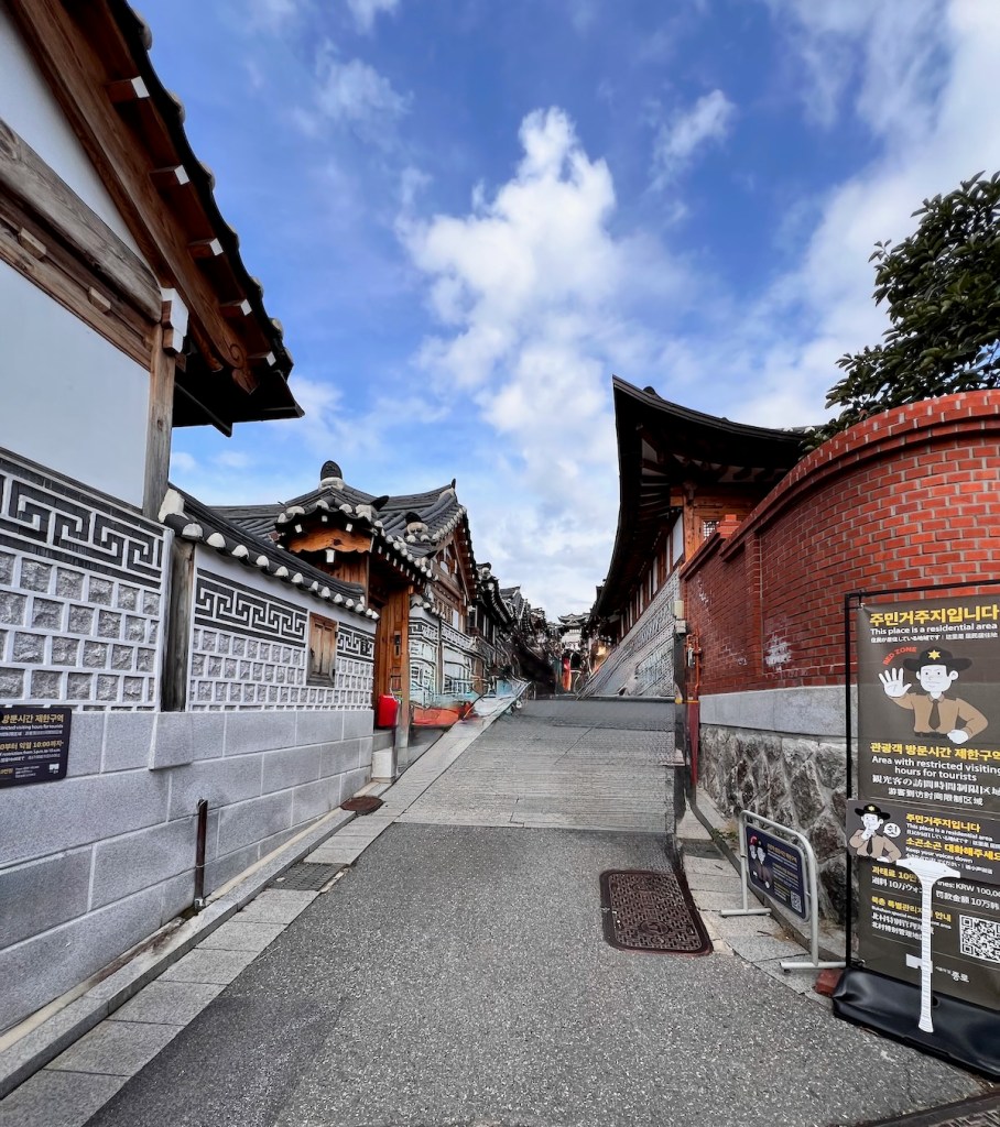 Tören sonrası, restore edilmiş geleneksel Kore evlerini görebileceğimiz Bukchon Hanok Köyü‘nü ziyaret ettik. Bukchon Hanok Köyü, Seul’ün merkezinde yer alan ve geleneksel Kore mimarisi olan “hanok” evlerinin korunduğu tarihi bir mahalledir.