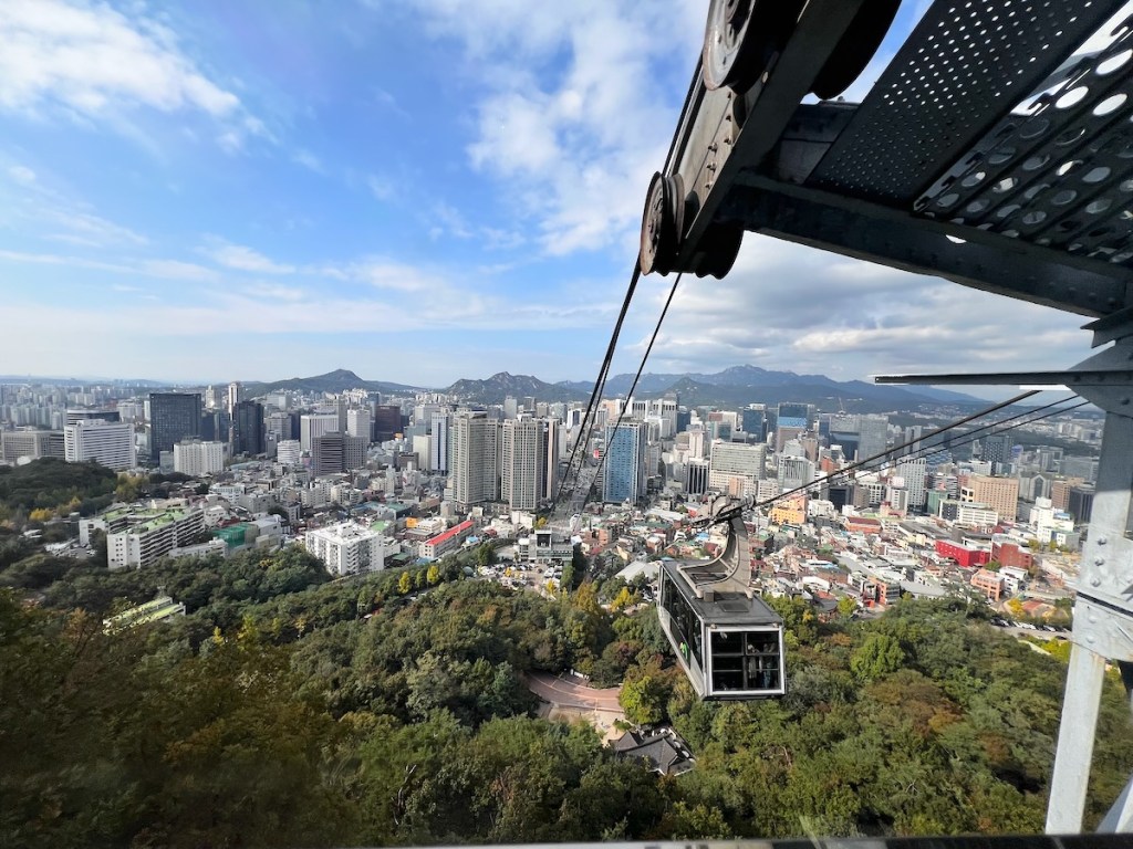 Kuleye teleferikle çıkmanızı ama mutlaka yürüyerek inmenizi tavsiye ederim.İnişi yeşillikler içinde ve her bölümde farklı Seul manzarası eşliğinde oluyor. Teleferik ile tepeye, yani kuleye çıkış yaklaşık 10 dakika kadar sürüyor. Teleferik yavaş yavaş yükselirken, altınızda küçülen Seul’un değişik manzaralarına hayran olacaksınız.