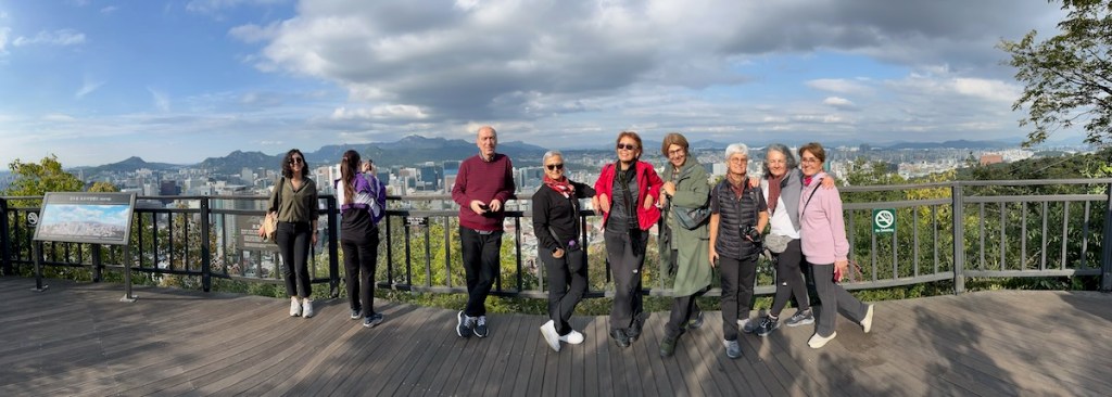 Eğer yürüme ile ilgili bir sıkıntınız yoksa mutlaka yürüyerek aşağıya inmenizi tavsiye ederim. Çok sayıda ama yormayan merdiven ile aşağıya iniş, bizim gibi fotoğraf için çok durmayla bile, 30-45 dakika sürüyor. Aşağılara indikçe manzara değişiyor. Doğru yerlere seyir terasları yapmışlar. Aslında buralar, eski Seul’un sur duvarlarının bulunduğu yerler