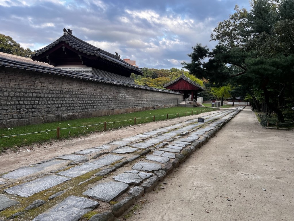 Jongmyo Mabedi rehberle gezmek zorunlu. Mekana, Kore’de çok önem verdikleri ve saygı duyulan bir yer olduğu, bize rehberlik eden bayan rehberin her halinden belliydi. Tapınağa giden yol üç bölümlü. Ortadaki yol yalnızca ruhlar için ve buradan kimsenin yürümesine izin verilmiyor. Diğer iki yol ise kral ve katılımcılar için.