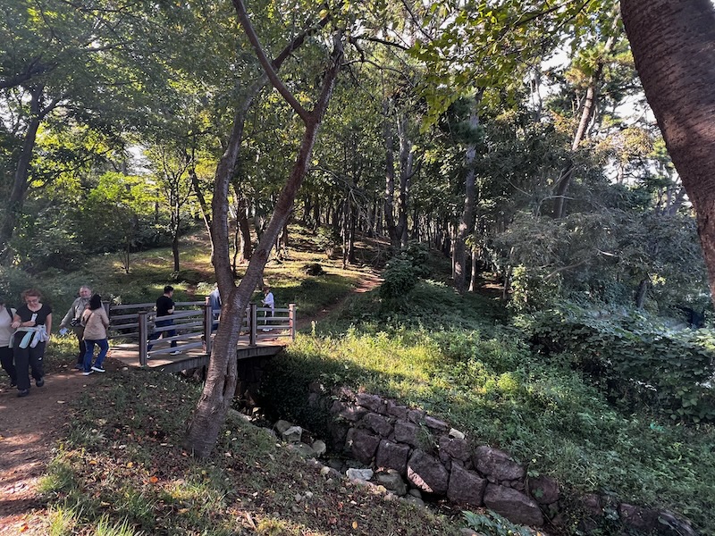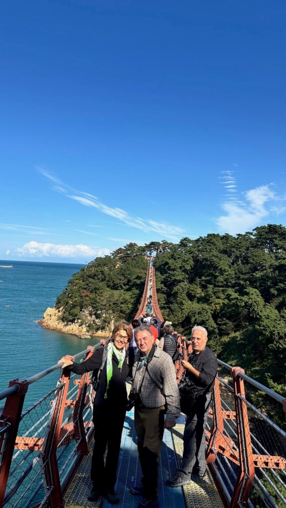 Daewangam, Kore’nin doğu kıyısında yer alan bir sahil parkı. Parkta çam, sakura ağaçları, manolya, kamelya, ve forsythia ağaçlarından oluşan bir orman ve bu orman içinden geçen güzel bir yürüyüş parkuru var. Bu parkı Güney Kore programını yaparken, Ahopsan Bambu Ormanı ile birlikte fark etmiş ve gezi programına almıştım. Doğu Denizi’ne bakan bu park içinde bir deniz feneri (Ulgi Feneri) bulunuyor. Bu yöndeki yüyüşümüzün son noktası olan Daewangam Kayası anakaraya demir bir köprü ile bağlanıyor. Biz ekip olarak işte bu güzel yolu yürüyeceğiz. Bu noktadan sonra da Ulsan’da liman bölgesinde bizi bekleyen otobüsümüze doğru bir yürüyüş daha yapacağız.