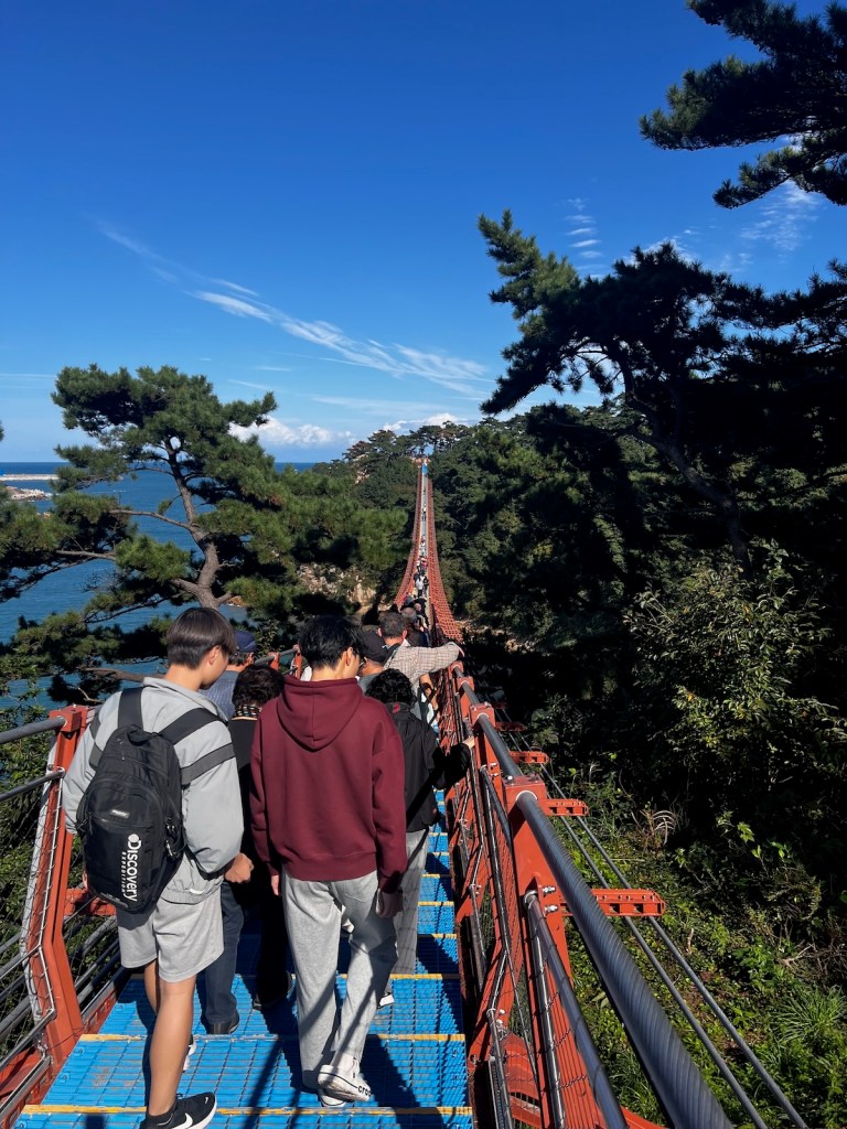 Yürüyüşünüze başlamadan önce parkın girişindeki ofisten mutlaka bir park haritası edinin. Girişten sonra kısa bir yürüyüşle asma köprüye geleceksiniz. Daewangam Parkı Asma Köprüsü, Ulsan’daki ilk asma köprüdür. 303 metre uzunluğunda inşa edilen köprü, Daewangam Park’taki Hatgaebi ve Surubang kıyı yollarını birbirine bağlıyor. Köprü, ara destekler olmadan tek seferde kıyıdan kıyıya bağlanmakta ve şu anda ülkedeki asma köprüler arasında en uzun açıklıklı olanıdır. Bu köprü Hyundai Şirketinin şehre bir hediyesi. Finansmanı o şirketten olmuş. Deniz üzerinde bir köprü olduğu için Daewangam çevresindeki kıyı manzarasının tadını çıkarmayı unutmayın.