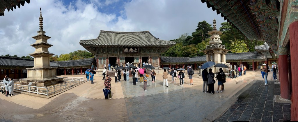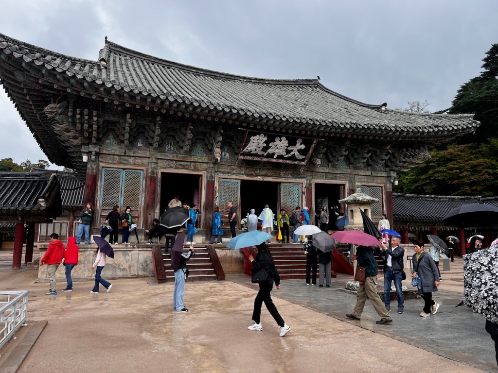 Golgulsa Tapınağına gitmeden önce bugün iki yere ziyaretimiz olacak; Seokguram Kaya Tapınağı ve Bulguksa Tapınağı. Hava yine yağmurlu. Kore gezimizde 2 gün yağmura yakalandık, bir tanesi de bugüne denk geldi.