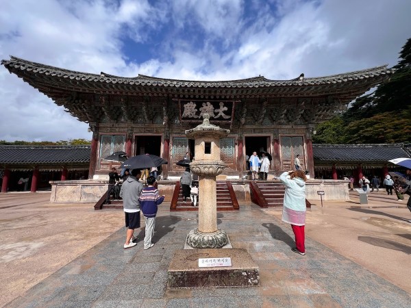 Ana salonun adı Büyük Aydınlanma Salonu‘dur (Daeungjeon). Bu salonun önünde ise biraz önce bahsettiğim iki pagoda bulunuyor. Salon, Sakyamuni Buda’yı barındırır ve ilk olarak 681 yılında inşa edilmiştir.