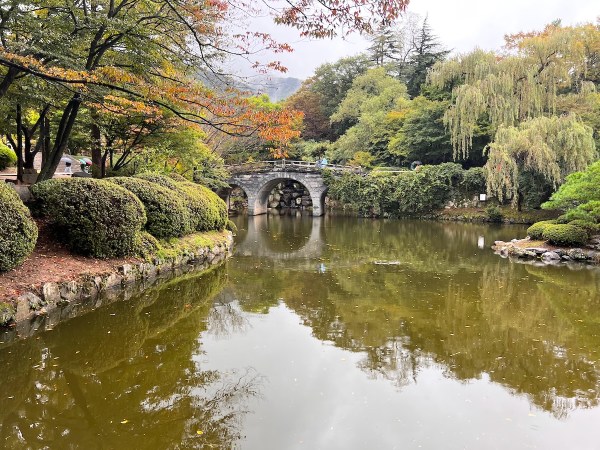 Çok yemek sonrasında yorgun olmamıza karşılık, sindirmeye yardımcı olsun diye göl çevresinde yürüyüş yapmaya karar verdik. Orada da bizi sürprizler bekliyordu. Biz Güney Kore’de olduğumuz sırada 28-31 Ekim tarihleri arasında APEC (Asya-Pasifik Ekonomik İşbirliği) toplantısı vardı. Bu toplantının merkezi de Gyeongju’ydu. Bu nedenle hem Woljeonggyo Köprüsü ve hem de otelin bulunduğu gölde ekstra ışıklandırma çalışmaları yapılmıştı. Biz de onlara denk geldik.