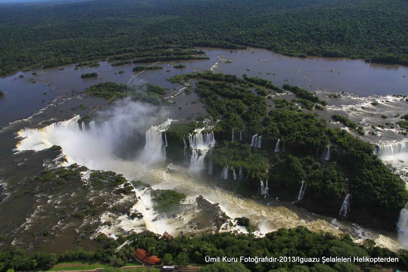 Brezilya tarafında helikopterle şelalelerin üzerinde bir tur atmayı daha İstanbul’da iken aklımıza koymuştuk. Arkadaşların çoğu da bu fikre katılınca Iguaçu üstünde bir tur satın aldık. Helikopterlere 4 kişi biniyorsunuz. Bizim gittiğimiz zamandaki fiyatı 110 USD/adam başı idi. Tur yaklaşık 10 dakika sürüyor ve şelalelerin üstünde sadece iki tur atıp geri dönüyor. Ancak yukarıdan öyle bir manzaraya şahit oluyorsunuz ki “değermiş” diyorsunuz.