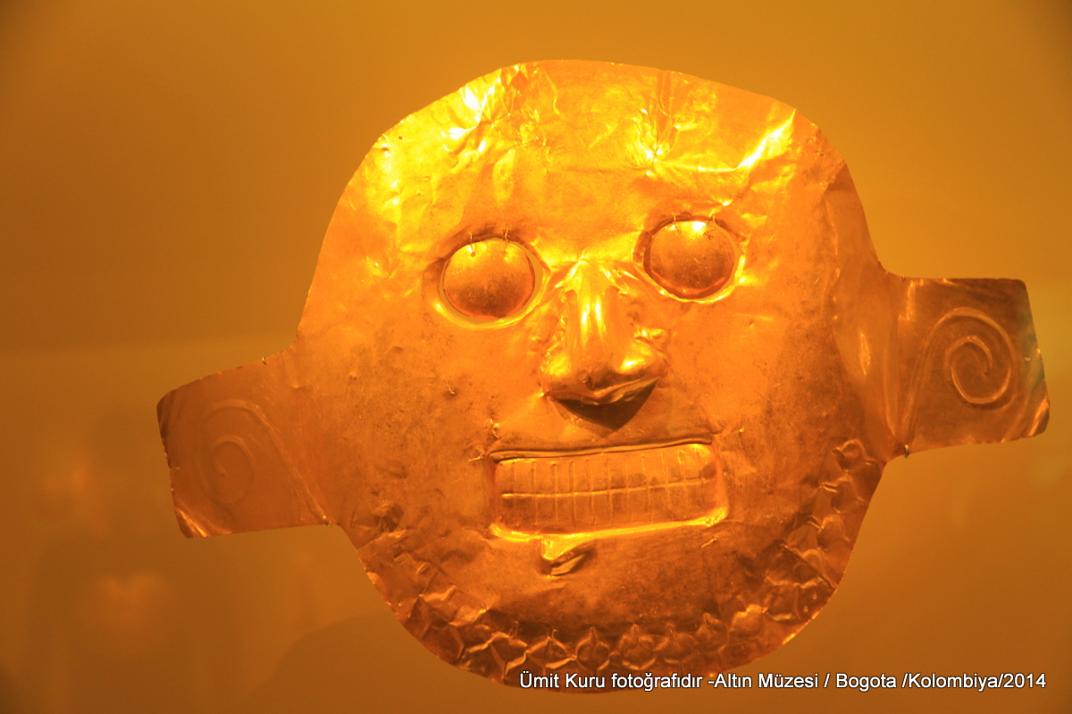 Bu alandan sonra aşağıya doğru yürüyüşe başladık ve paramızı Kolombiya Pezosuna değiştireceğimiz bir döviz bürosuna uğradık. Sonraki hedefimiz ise dünyanın en önemli müzeleri arasında sayılan Museo Del Oro yani Altın Müzesi. Bu müze mutlaka ziyaret edilmesi gereken bir müze. Birkaç katlı olan müzede 30000 parçanın üzerinde altın objeler var. Müthiş bir müze diyebilirim. Burada büyüklü küçüklü altından takılar, heykeller masklar var. İspanyolların, bu altınları yerlilerin üzerinde gördüğü zaman ki şaşkınlıklarını ve sahip olmak için kabaran iştahlarını anlayabiliyorum ama elde ediş biçimlerini asla onaylamıyorum. Altının işlenmesi ve saf veya başka bir maden katılarak kullanılması kabileden kabileye değişebiliyormuş.