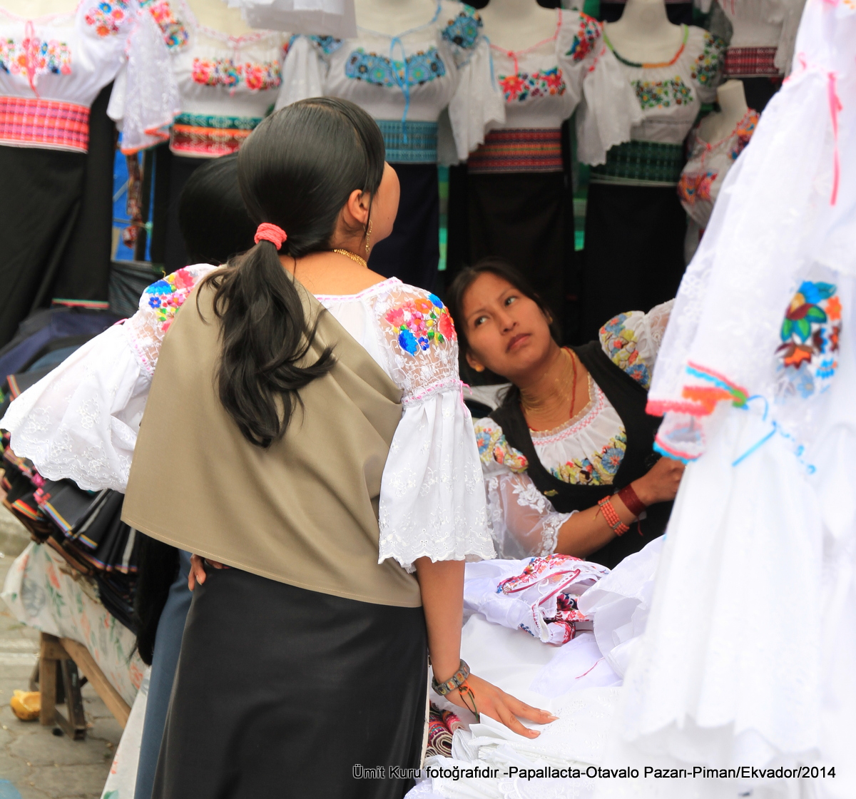 - Cumartesi günü Otavalo Kızılderili pazarında, yerel giysiler içinde satış yapan yerli halkla temas edip, alışveriş yapmadan (https://gezekalin.com/2014/08/15/ekvador-kolombiya-venezuela-gezi-yazisiquitoya-dogru-quito/)