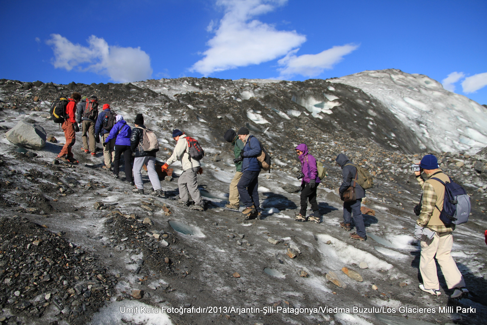 IMG_8082Aslında bugün daha farklı bir programımız vardı.  Los Glaciares Milli Parkı içinde, Fitz Roy Dağına gitmek için takip ettiğimizden farklı bir rotadan yürüyüp,  Cerro Torre (Torre Dağı)’yi daha iyi fotoğraflayabileceğimiz 5 saatlik bir yürüyüş yapacaktık. Zorluk derecesi düne göre daha düşük olan bir yürüyüştü. Ancak civarda bulunan Viedma Buzulunun üstünde yürüyüş, dünkü gibi bir yürüyüşe tercih edildi. Buzul yürüyüşü için Perito Moreno Buzulu’nu da tercih edilebilirdik. Ancak rehberimiz Cem, buzul yürüyüşü için Viedma Buzulunun daha doğru bir tercih olduğunu söyleyince hiç düşünmedik ve tercihimizi Viedma Buzulundan yana kullandık..
