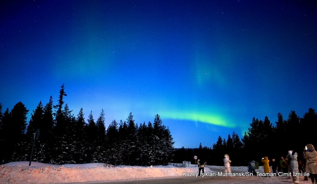 Kuzey ışıklarını görmek için Rusya’nın Murmansk şehrine yaptığımız gezimizde yukarıda bulunan fotoğraf gibi net, çıplak gözle görülen Kuzey Işıklarına rastlayamadık. Yukarıdaki fotoğraflar aynı bölgeye gezi yapan profesyonel rehber ve sevgili arkadaşım Teoman Cimit‘in fotoğraflarıdır. Onun izniyle ve aynı bölgeye yaptığı geziden kendi çektiği fotoğrafları kullanmak zorunda kaldım. Kendisine teşekkür ederek konuya girelim. Bizim gezideki fotoğraflar, kuzey ışıklarını görmedeki şansızlığımız nedeni ile ancak aşağıdaki fotoğraf kadar olabildi.
