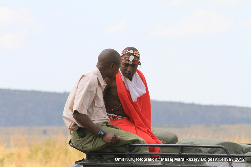 Yarı göçebe ve savaşçı bir kabile olan Masai yerlilerini, cesaretlerinin simgesi olan kırmızı renkli, ekoseli bir kumaşa bürünmeleri ile kolayca tanıyabilirsiniz. Masai halkı çok ince ve uzun bir ırk. Ayaklarına araba lastiğinden yapılma sandaletler giyiyorlar dendi ama ben pek benzetemedim. Ataerkil bir aile yapıları var. Erkeklerin ellerinde güvenlik amaçlı kullandıkları, aynı zamanda güçlerinin de simgesi olan asaya benzeyen sopalar var. Hem kadın ve hem de erkekler pek süslüler. Kulaklarının dış kepçesinde büyük bir delik açılmış. Bazılarının dış kulaklarında bayağı bir yırtık var. Buraya takı veya obje yerleştiriyorlar.