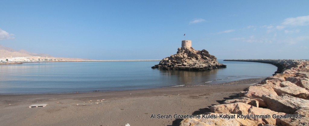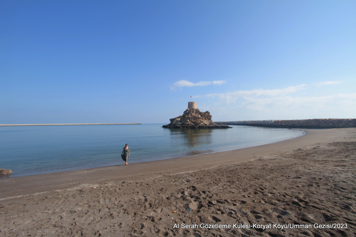 Saat 08:00 Maskat’taki otelden başlayan gezimizde ilk durağımız Maskat’tan 129 km uzaktaki Quriyat (Koryat) adlı küçük balıkçı köyü oldu. Burası Portekiz döneminden kalma ve bölgede kıyı boyunca dizilmiş kale ve gözetleme kulelerinden birkaç tanesine de ev sahipliği yapıyor. İlk durağımız Al Serah Gözetleme Kulesinin bulunduğu sahile gitmek oldu. Sabahın sakinliği içinde burasını bol bol fotoğrafladık.