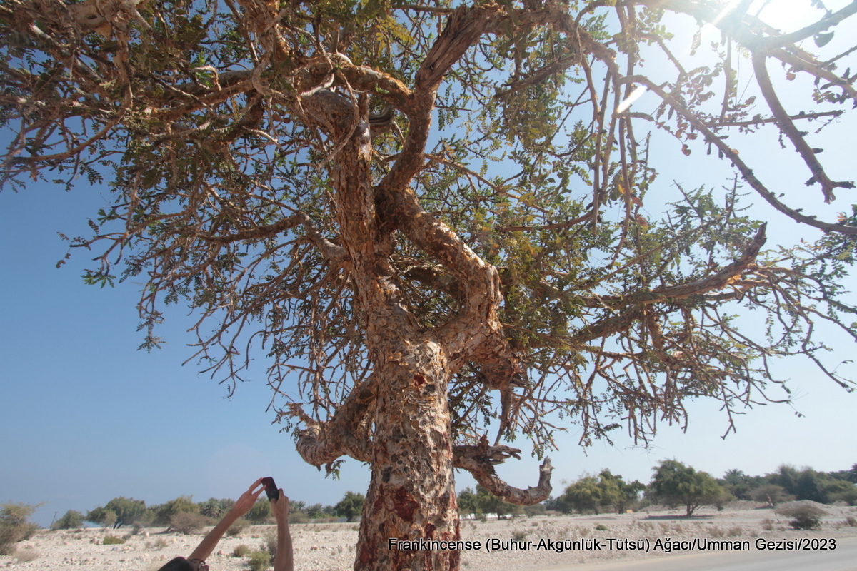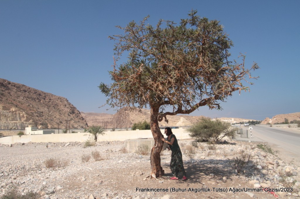 Wadi Al Arbeieen gezisi sonrası 17 km kadar devam ederek Dibab denen yerleşim yerine ulaştık. Burada bizi günün ikinci sürprizi bekliyordu. Basim’in bize yol boyu hiç bahsetmediği sürpriz bir Buhur Ağacı (Akgünlük Ağacı-Frankincense) görmemizdi. Gezdiğimiz tüm Umman bölgelerinde reçinesinin kokusunu aldığımız buhur-frankincense ağacı, Salalah Bölgesinde Wadi Dawkah denen bir yerde yoğunca bulunuyor. Bu ağacı görememek beni üzüyordu. Birden bire arabayı durdurup bize ağacı gösteren Basim sayesinde buhur ağacını da yakından görmüş, gövdesine dokunmuş olduk. Bölgedeki tek ağacı kim dikmişse ve nasıl bu kadar sene kalmışsa bilmem ama bizi onu görmek mutlu etti.