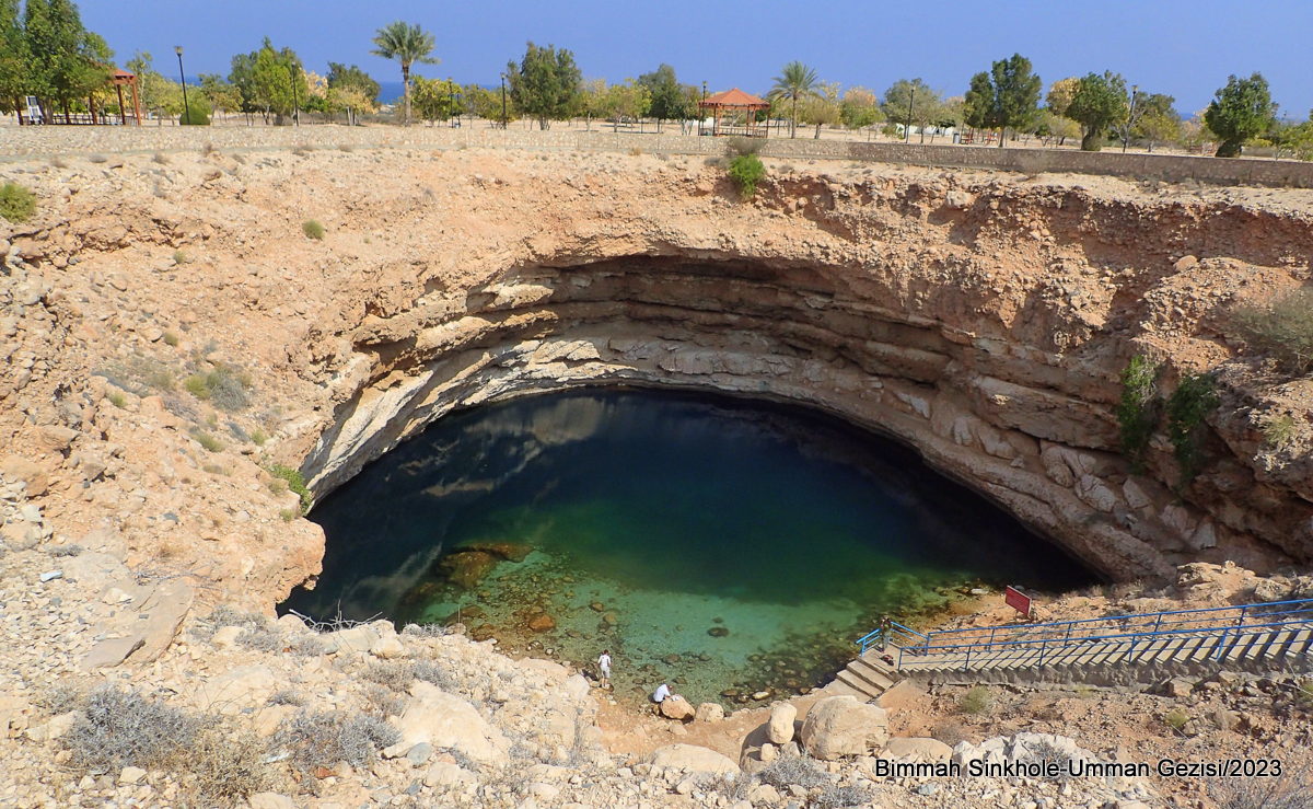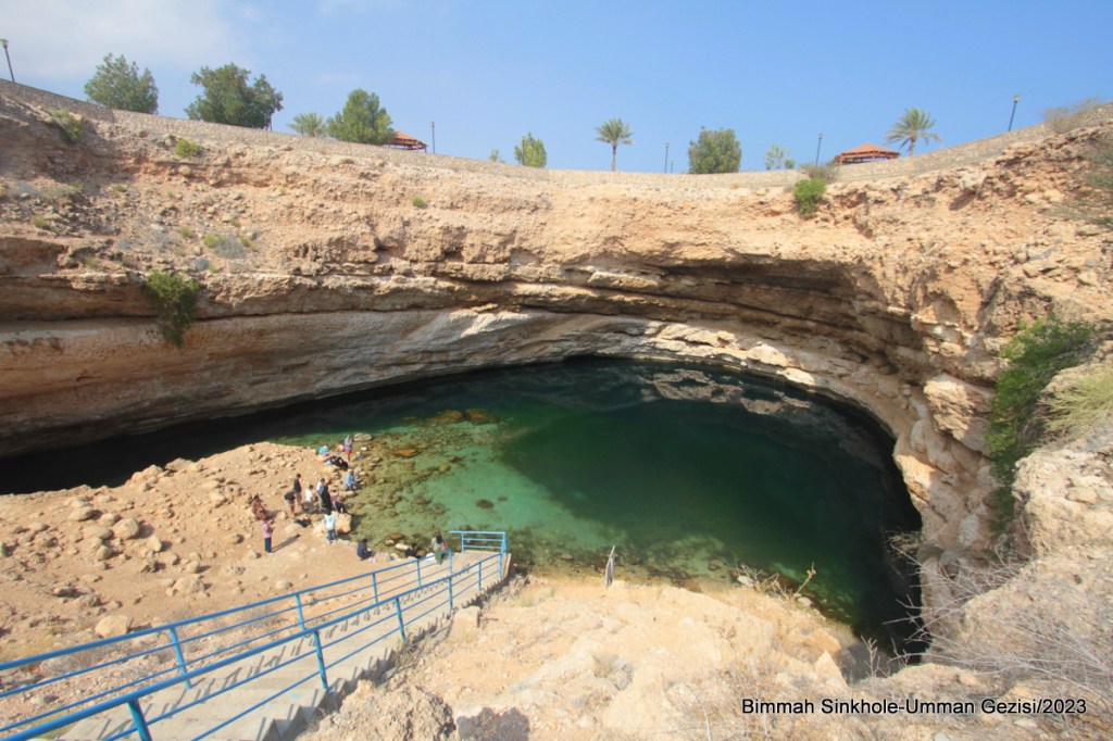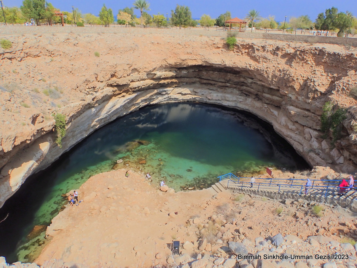 Bu güzel sürpriz sonrasında günün önemli gezi yerlerinden olan Bimmah Sinkhole‘e doğru yola devam ettik. Burası 50 metreye 70 metre genişliğinde ve yaklaşık 20 metre derinliğinde bir düden.