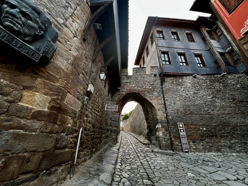 Buradan daha aşağıya doğru yürüdüğünüzde hemen kapının sol dibinde Dimitar Georgiadi Müze Evi bulunuyor. Bölgesel Tarih Müzesi -“Bulgaristan Ulusal Dirilişi Sergisi” olarak hizmet veren bu evi, daha sonra gezeceğiz. Sağ tarafta ise Erken Bizans Dönemine ait kale duvarları ve kule kalıntıları bulunuyor. Arnavut kaldırımlı taşlardan aşağıya doğru gidince solunuzda Nedkoviç Müze Evi ve daha da aşağıda solda Aziz Nedelya Kilisesi ve en aşağıda da eski Antik Filipepolis’in Doğu Kapısı kalıntıları mevcut. Buradaki müze evlerin hepsini gezmek için zaman yetmeyeceğinden, bu noktadan geriye dönüp esas hedefimiz olan Etnografya Müzesi olarak kullanılan zengin tüccar Argir Kuyumdzhioğlu (Kuyumcuoğlu) Müze Evi‘ne gittik.