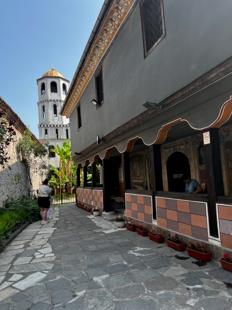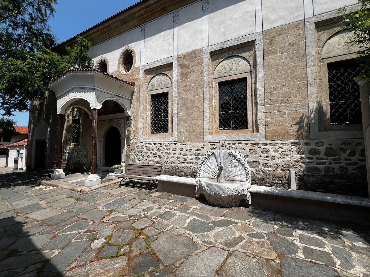 St Dimitar Kilisesi‘ne kadar geldik. Aziz Dimitar Kilisesi, 1838’de Bulgar ulusal canlanma döneminde, Osmanlı yönetimi altında kültürel ve dini canlanmanın yaşandığı bir dönemde ortaya çıkmış. Kilisenin bahçesindeki tavuskuşu desenli çeşme çok güzeldi.