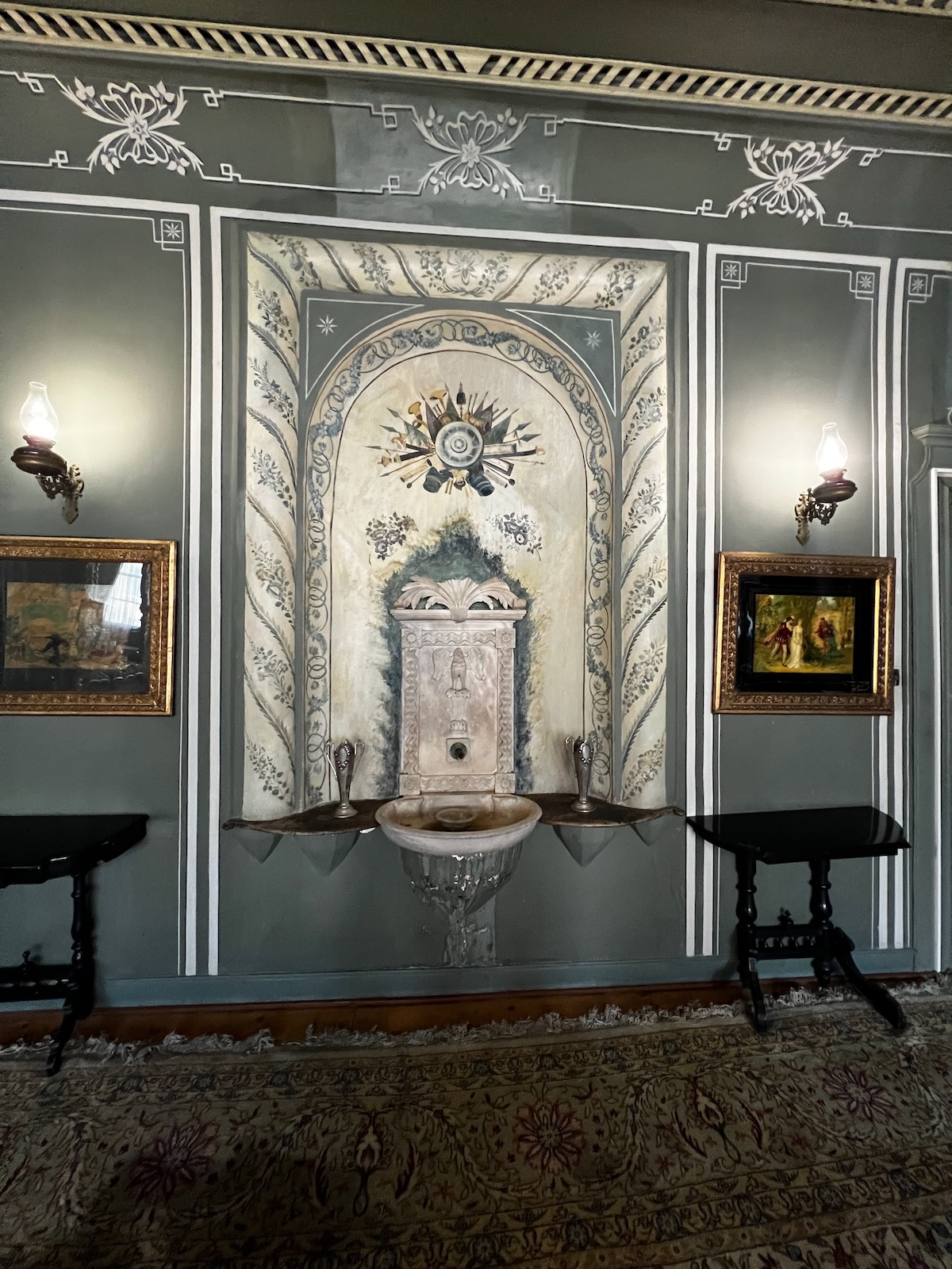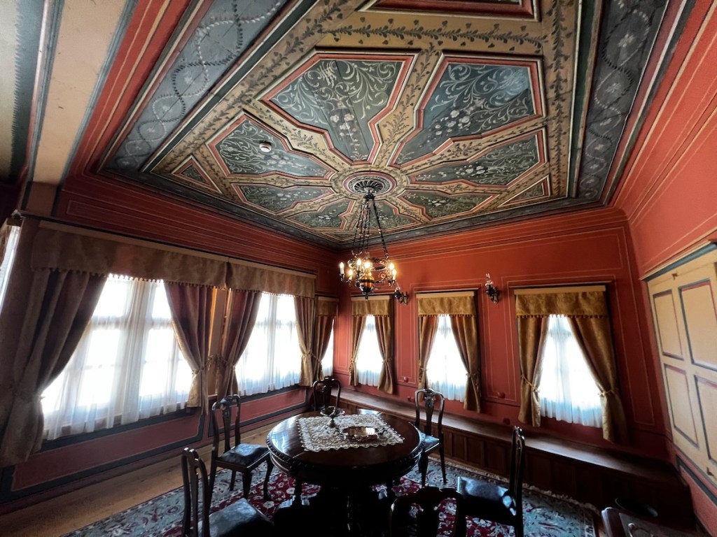Ev, sanatsal ve dekoratif süslemeleri açısından gerçekten çok güzel. Duvarları ve tavanlarında gösterişli detaylar var. Dekorasyonu yaratan sanatçılardan bir tanesi İtalyan’mış. Birinci kattaki duvar detaylarının boyanması, ilk kez kağıt şablon tekniği kullanılarak gerçekleştirilmiş.
