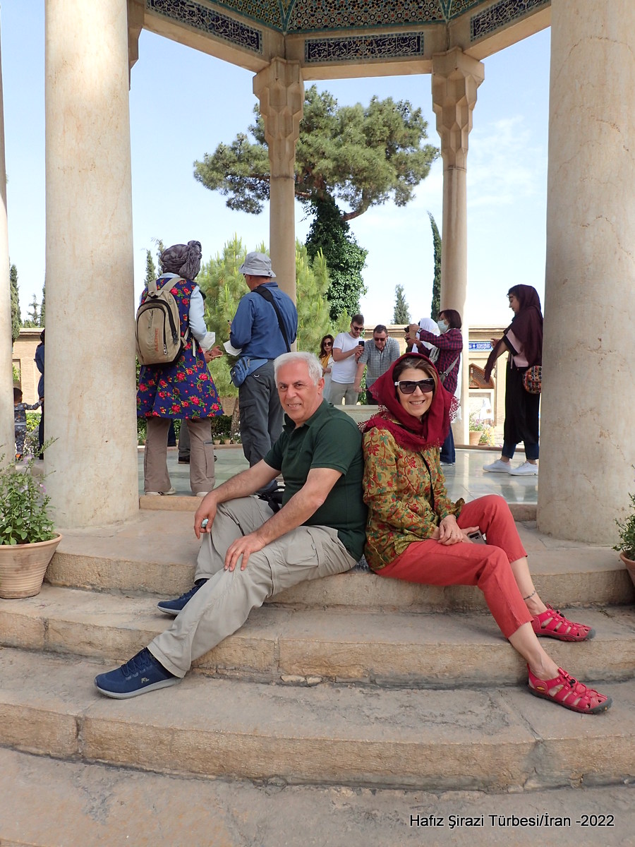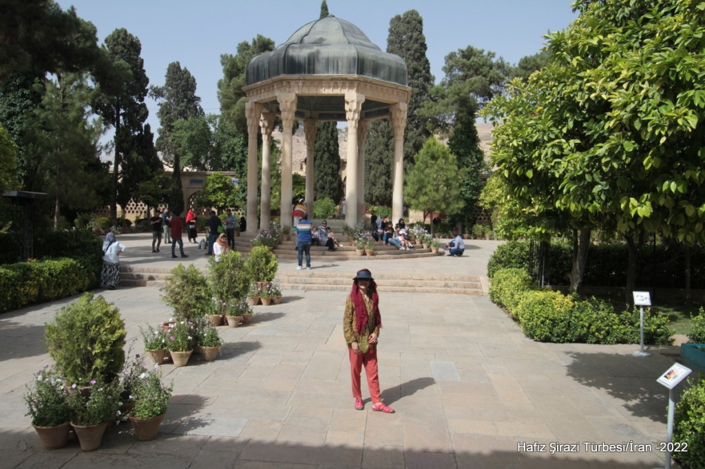 Şiraz ile anılan bir diğer şairin, Hafız‘ın Türbesini de ziyaret ettik. Hafız, ölümünden sonra derlenen şiirlerinden oluşan bir koleksiyon olan Hafız Divanı ile tanınır. Kendisinin yazdığı şiirler İran’da pek sevilmiş. Hafız sadece halkın değil, sarayın da şairi olmuş. Şiraz’da doğmuş, Şiraz’ı hiç terk etmemiş ve Şiraz’da ölmüş. Şiirlerinde aşktan, şaraptan-meyhaneden ve sevgiden bahsetmiş. Bunların mistik anlamlarla mı yoksa kelime anlamları ile mi değerlendirilmesi gerektiği tartışma konusu olmuş. Kendisi ile ilgili efsaneler de pek çok. Bunlardan bir tanesini çok sevdim;