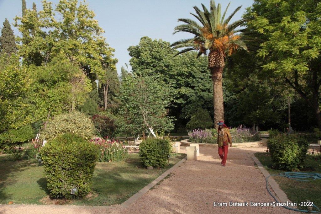 Bahçe klasik Pers Bahçeleri gibi duvarlarla çevrili ve 4 bölüme ayrılmış bahçe, ortada havuz, tüm bahçeyi dolaşan sulama sistemi var. Botanik bahçesi diye geçen Eram Bahçesi, gül ve lale bahçeleri, nar ve portakal ağırlıklı meyve ağaçları, selvi ve çam ağaçları ile dolu. Ortada bulunan ev sütunlu geniş bir terasa sahip. Şiraz gezimizin son durağı da bu güzel bahçe oldu.