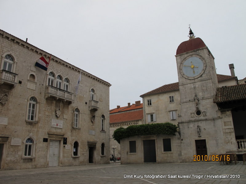 Katedral sonrası en ilgimizi çeken yer ise saat kulesi ve yanında bulunan ve 14 yy’dan kalma altı kolonla desteklenen sundurma oldu. Saat kulesinin duvarında bulunan iki adet rölyeften bir tanesi Nicola Frentinac’a ait (1471) ve diğeri Ivan Mestrovic’e (1950-Ban Berislavic). Bu duvarın alt tarafında eskiden cezalandırma da kullanılan zincir mevcut.