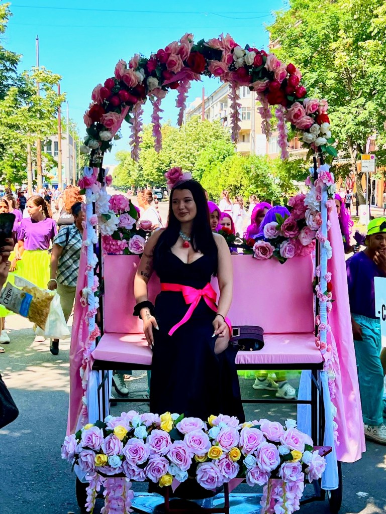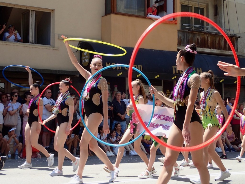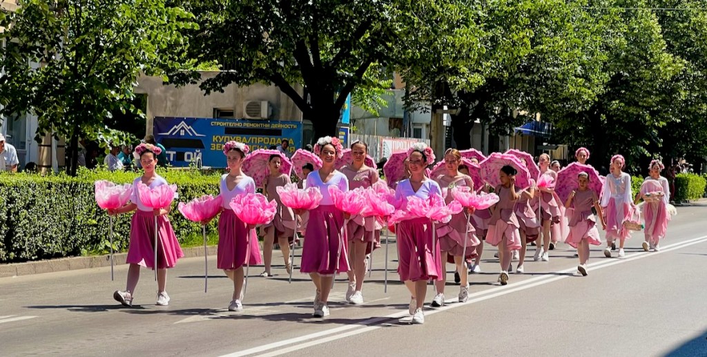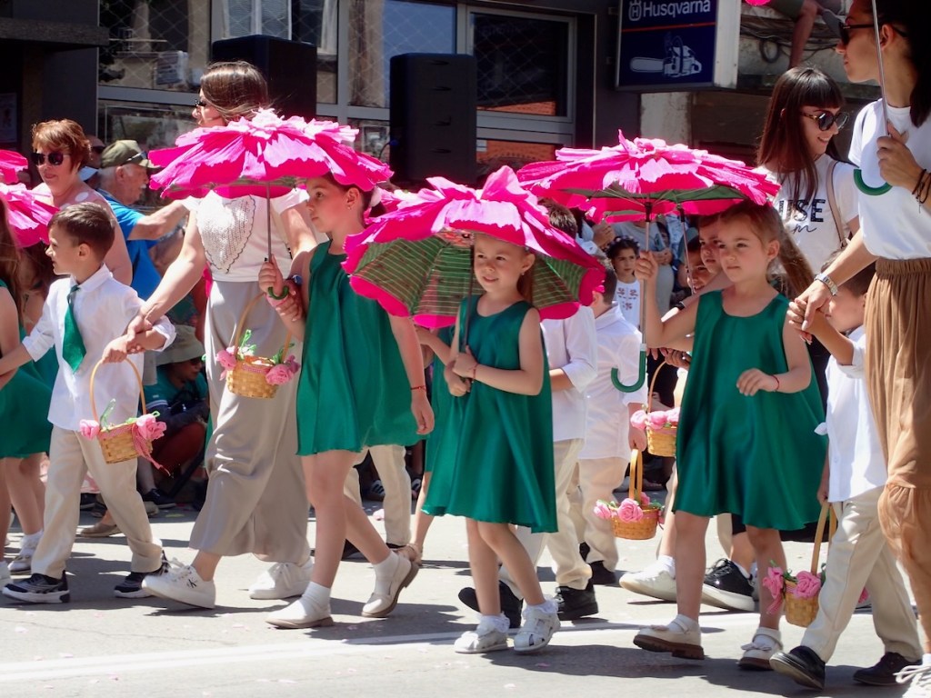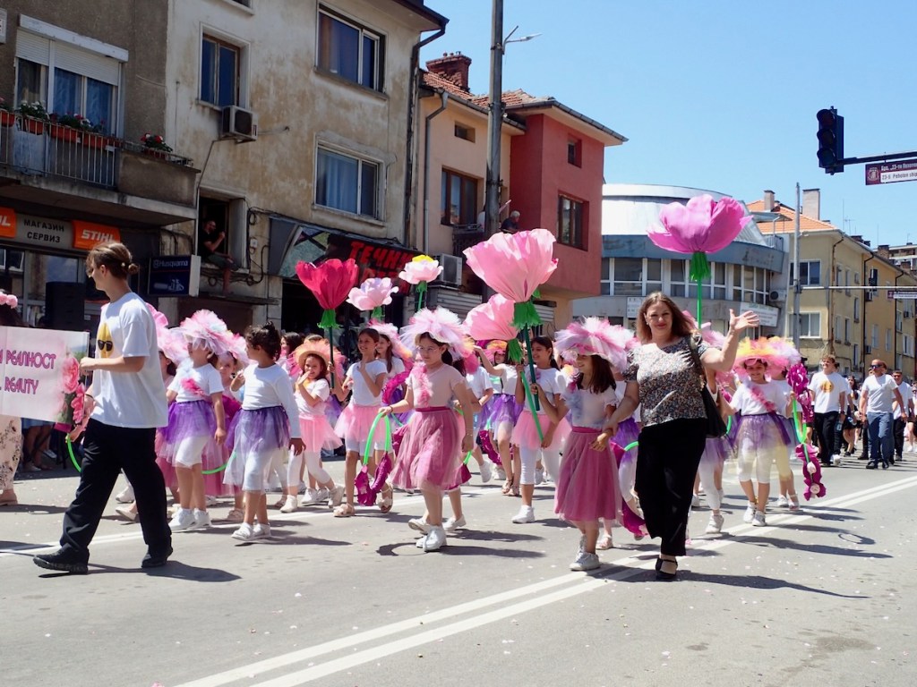 Kaldırımda uygun bir yerde konumlandık. Yürüyüşün başlaması epey uzun sürdü. En başta 2025 yılı Gül Festivali Kraliçesi seçilen genç kızlar olmak üzere okullar, kurumlar renkli kıyafetleri ile sırası ile dizildiler ve sunucunun takdimi ile yürüyüş başladı.
